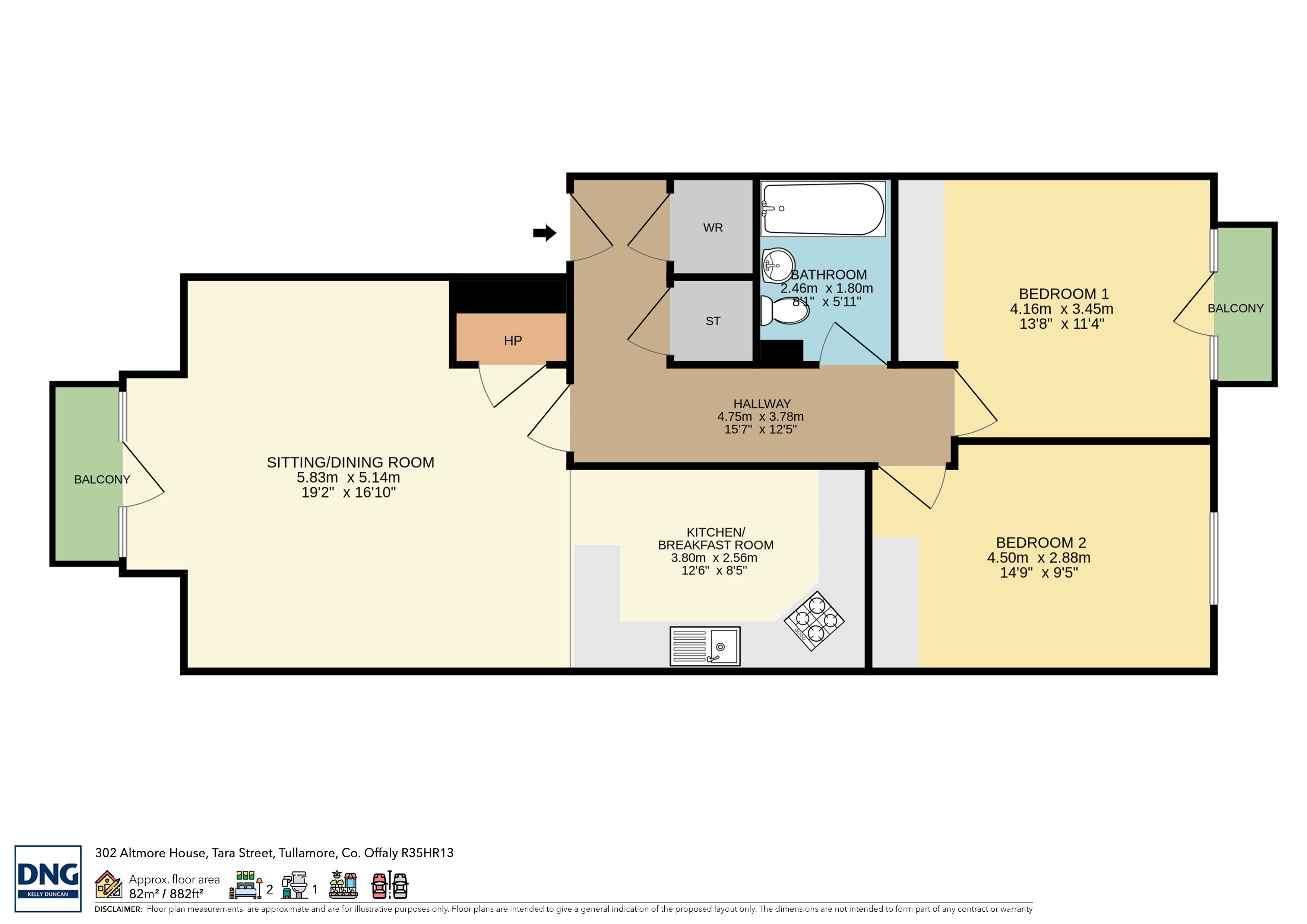 Apartment 302 is a second floor, town centre, two bedroom apartment offering some 82sqm of living space.