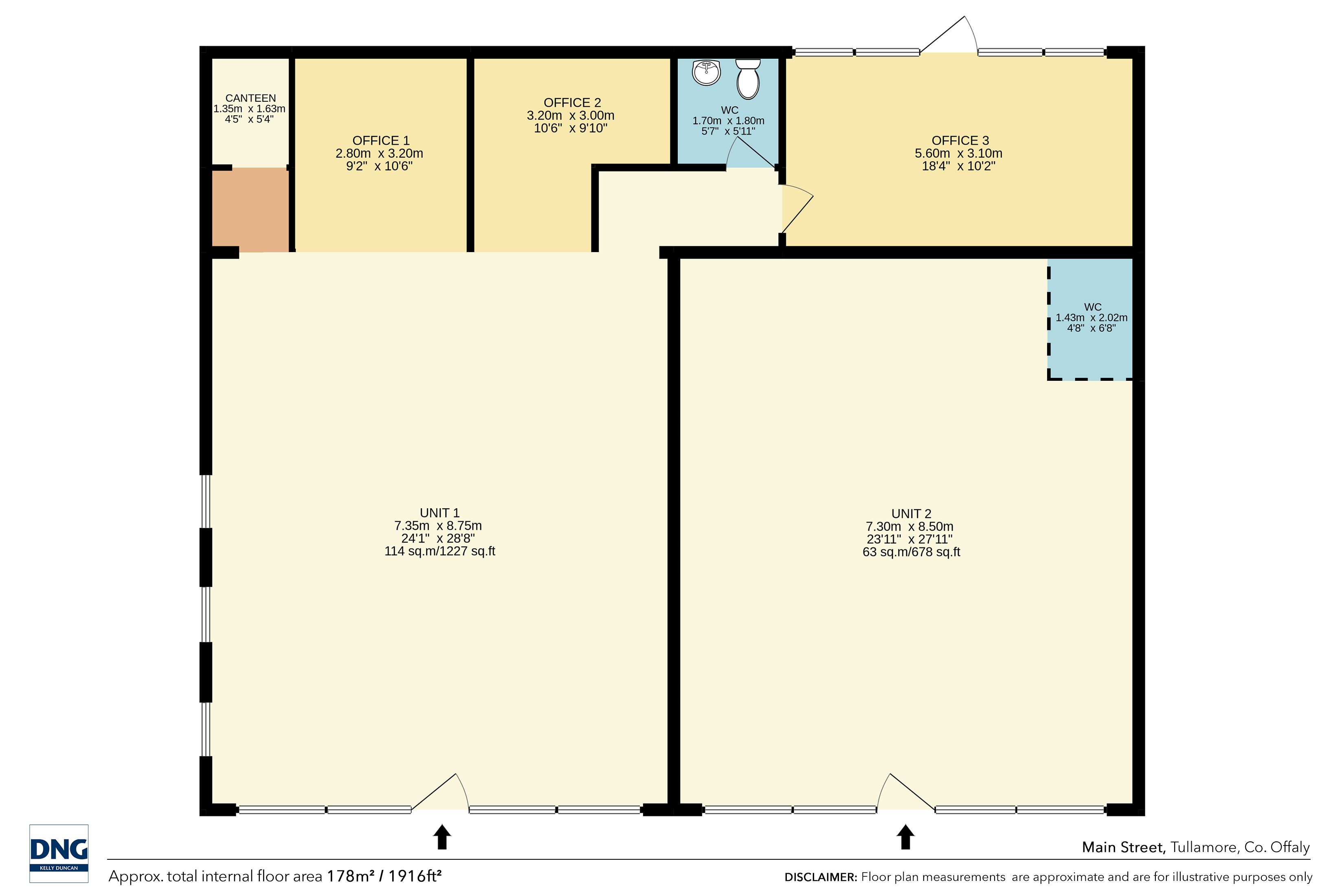 Unit D1 is comprised briefly; Own Door Access With Open Retail Area, Canteen & Comms room, Three Number Offices & Toilets (c. 114SQM/1,227 sq ft)