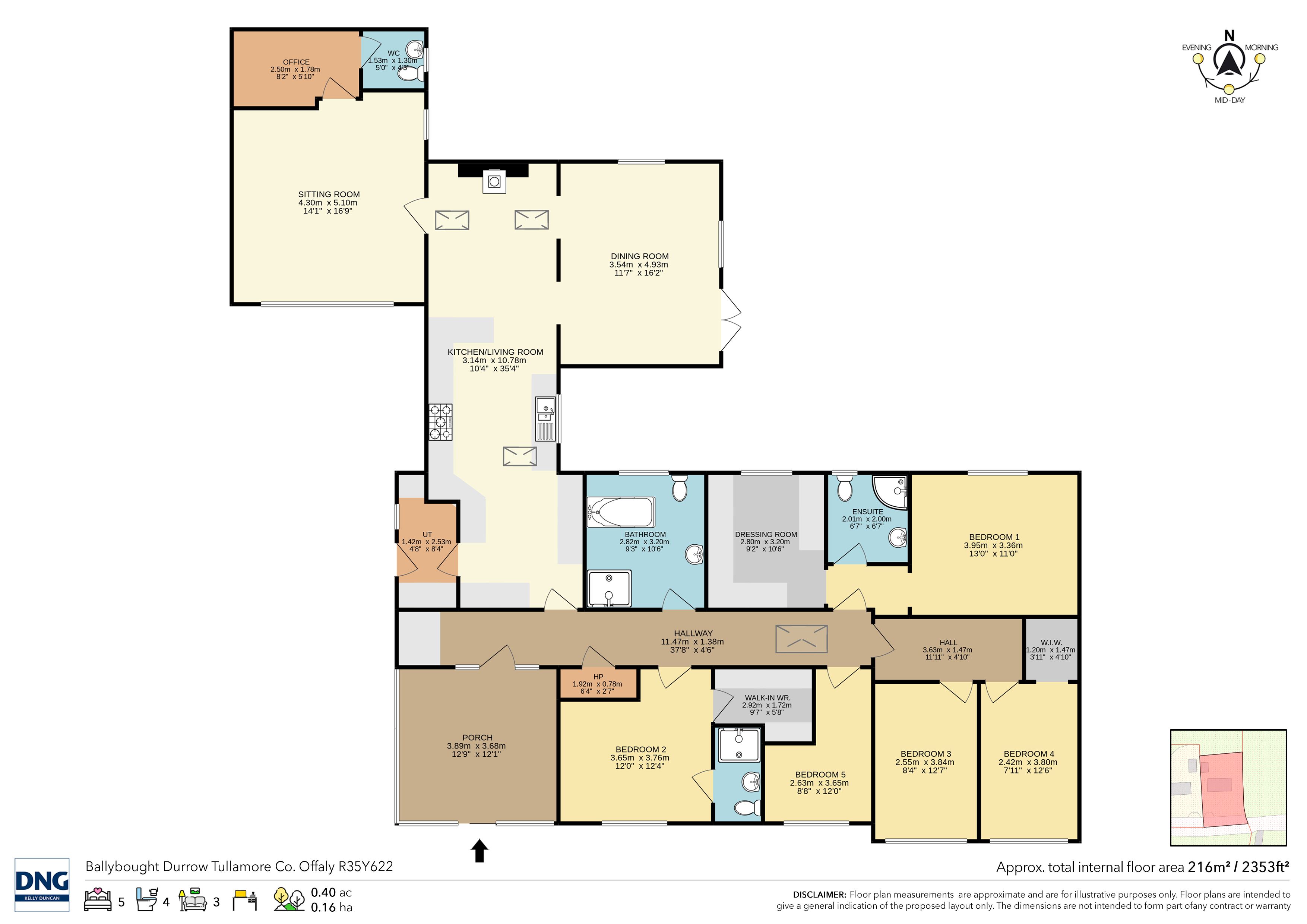 DNG Kelly Duncan are pleased to offer for sale by Auction this five bedroom detached bungalow located in sought after Durrow, Tullamore, Co. Offaly. Situated in scenic rural area yet providing easy access to Tullamore town & M-6 Motorway. Property requires some repairs and renovations.
